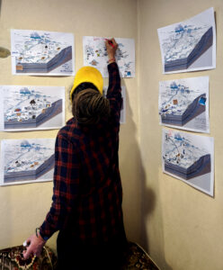 C’est une sensation que j’aime, marcher avec en écoutant des gens qui parlent d’une histoire que je ne connais pas. L’histoire de l’eau, d’une rivière, de paysage. C’est comme un voyage à travers le temps et les couches. Une découverte toujours renouvelée des anciennes géographies. Anciens marécages, la vie paysanne, découvrir qu’il se dressait des montagnes à Caen. Ou ses alentours.