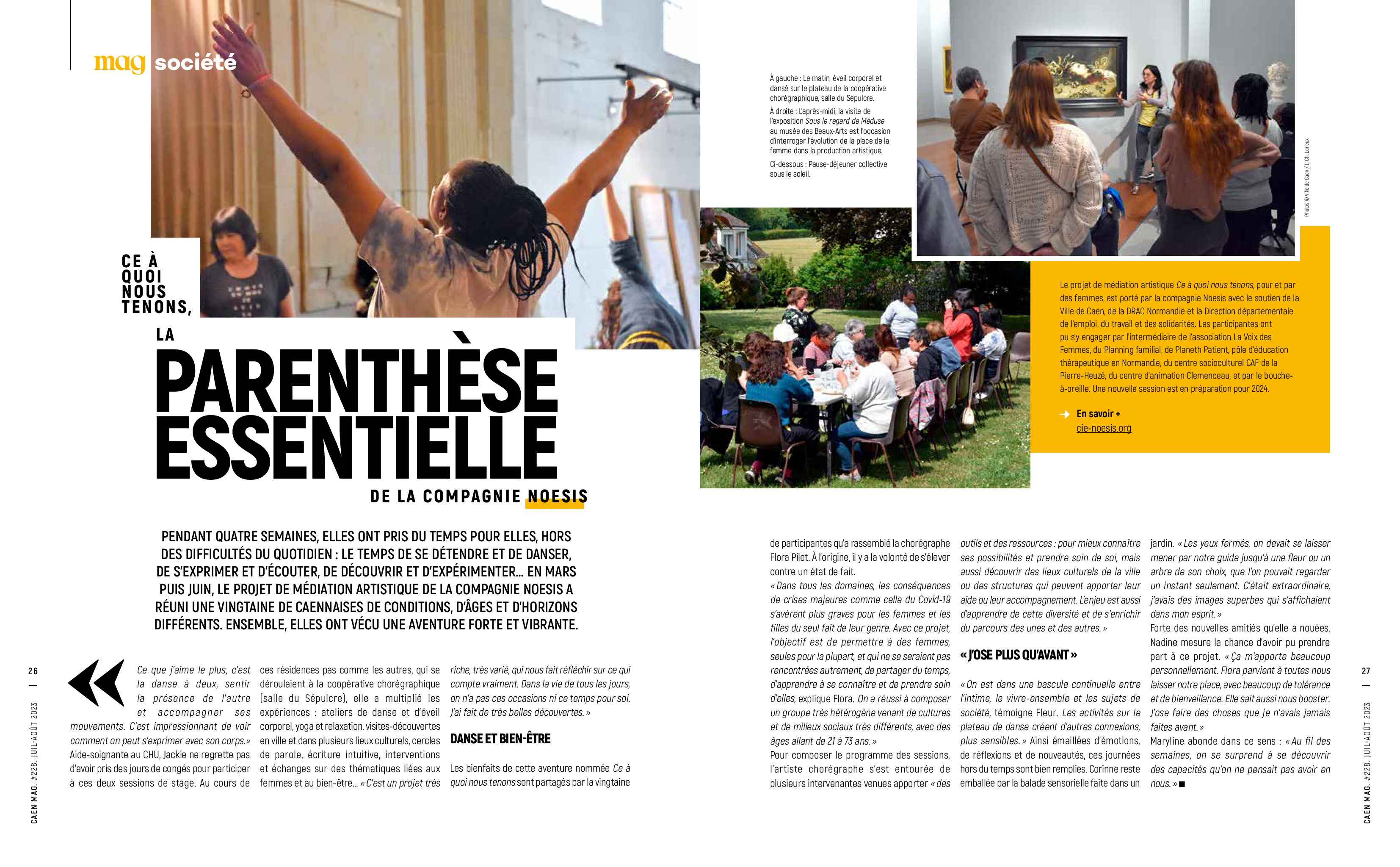 Porté par Flora Pilet, chorégraphe et co-directrice de la compagnie Noesis, ce projet s’inscrit dans une recherche artistique au long cours qui interroge la place et la représentation du corps des femmes à l’aune des pensées écoféministes, en articulant expérience corporelle, attention au vivant et enjeux écologiques.